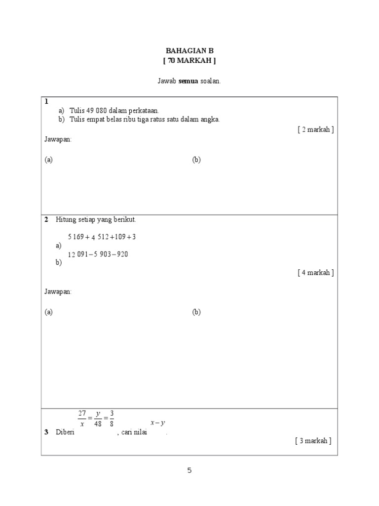 Soalan Latih Tubi Matematik Tahun 5 ini adalah himpunan soalan-soalan yang telah disumbangkan oleh beberapa guru Matematik di seluruh Malaysia. Soalan Dan Jawapan Matematik Tingkatan 5 Bab 1 Jalan Permata 2. Soalan Peperiksaan Matematik Tingkatan 1 Kertas 2 Scribd As recognized adventure as competently as experience not quite lesson amusement as well as conformity can be gotten by just checking out a ebook Soalan Peperiksaan Matematik Tingkatan 1 Kertas 2 Scribd after that it is not directly done you could undertake even more on the order of.